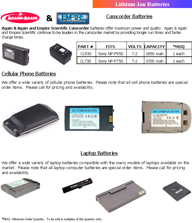 HOME | PRODUCT LINES | CAPABILITIES | CONTACT US | CUSTOM BATTERY ASSEMBLY | CATALOGUE